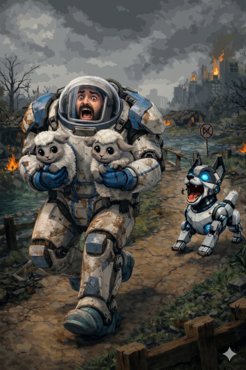 Nesse jogo você deve se mover pular as plataformas e escapar dos obstáculos para chegar até suas ovelhas que fugiram, em um mundo destruído e dominado pela tecnologia